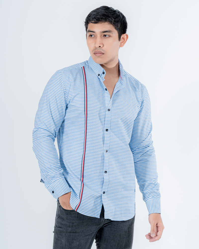 Dive into a sea of style with our Ocean Breeze Striped Shirt. Crafted with care and designed for the modern man, this shirt is a fusion of timeless elegance and contemporary flair. The serene blue stripes evoke the tranquil rhythm of ocean waves, while the soft fabric ensures comfort all day long.
